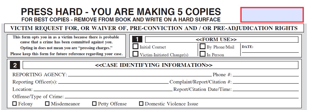 Field Interview Card (FI): Informational in nature, completed when no criminal charges are filed, nor a departmental report were taken at time of police contact